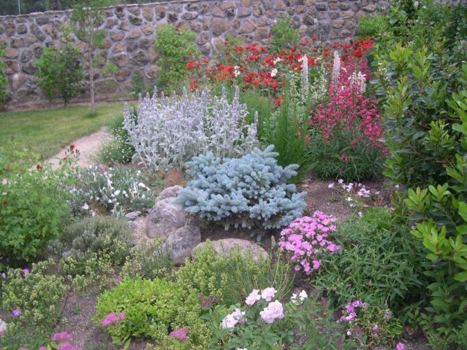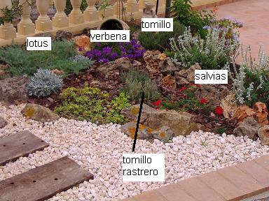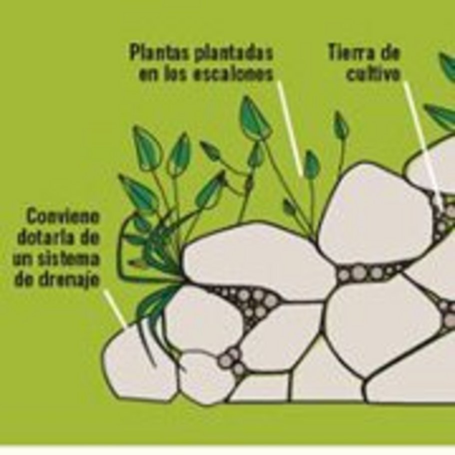 Las mejores rocas son las calcáreas, sobre todo las calizas. Los granitos también quedan muy vistosos, y se suelen cubrir de musgo, lo que aporta un toque natural. Es preferible que las piedras tengan forma irregular y que sus dimensiones no sean inferiores a 60x30x30 centímetros. Conviene colocar primero las más grandes, y separarlas lo suficiente para que las plantas se puedan desarrollar holgadamente. Se debe enterrar en la tierra al menos la mitad de su volumen y poner la parte superior algo inclinada hacia la pendiente, para que el agua vierta a la tierra. Entre un nivel de piedras y el siguiente, la tierra debe quedar horizontal.